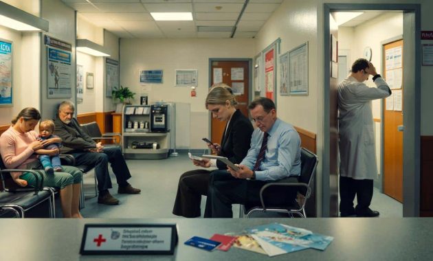 The waiting room smells of disinfectant and lukewarm coffee. A toddler cries in the corner, an old man stares at the floor, two office workers tap nervously on their phones, eyes flicking to the door every few seconds. On the wall, a laminated notice: “We are currently not accepting new publicly insured patients.” Someone takes a photo of it, shakes their head and whispers: “What kind of system is this?”
