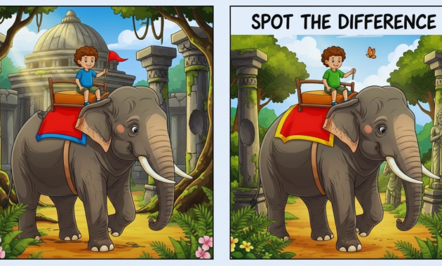 Many people still enjoy playing games where they have to find the differences. The two pictures look almost the same at first, but there are some small differences that you can’t see. When you have to finish the challenge in a certain amount of time, it gets even more fun. In this puzzle, you see two bright pictures of a boy riding an elephant outside. Your job is to find three small differences in 15 seconds. The pictures may look easy, but the time limit makes them harder.