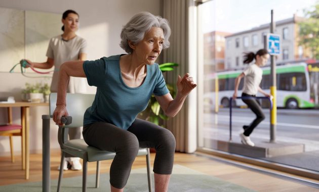 At the first session, she shuffled in, terrified of the step. The instructor almost instinctively went to get her a chair. Then she grabbed the resistance band and, to everyone’s surprise, could pull it as strongly as people 20 years younger. Her grip strength was solid. Her legs were shaky only when she had to move quickly or turn her head while walking.