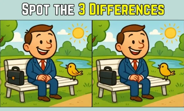 At first glance, the two images look calm and peaceful. A man sitting in a park. A bench. A small bird nearby. Trees in the background. Nothing dramatic. Nothing flashy. And yet, hidden inside this quiet scene are three small differences that most people miss on their first try.