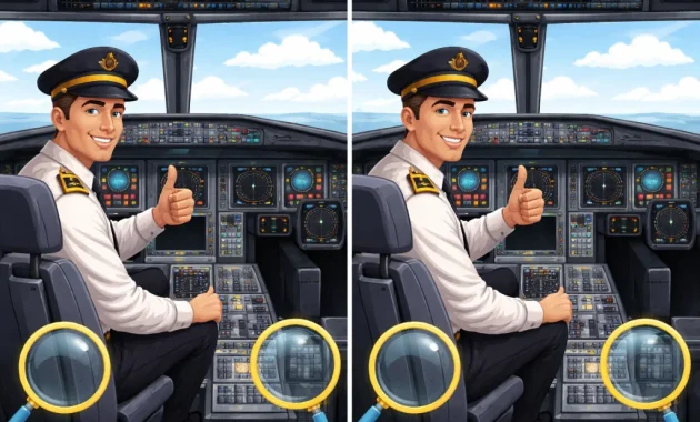 In today’s challenge, you are given two nearly identical images of a pilot inside a cockpit. Both scenes look polished and professional. The uniform appears sharp, the headset is in place, and the clouds outside seem calm. But hidden between these two pictures are three subtle differences. You have just 7 seconds to find them.